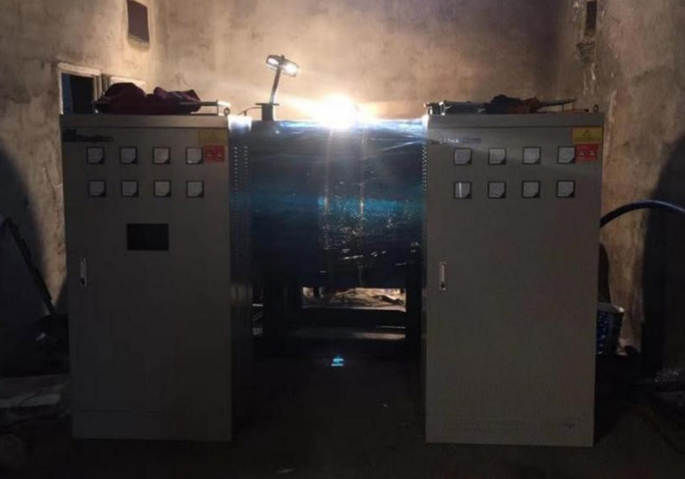 众缘 600KW 电热水锅炉采用控制和炉体分体式,2 台电控箱,避免了电器元件受热,采用彩色触摸屏控制系统,运行过程实现全自动化, 全中文操作界面实现人机对话。