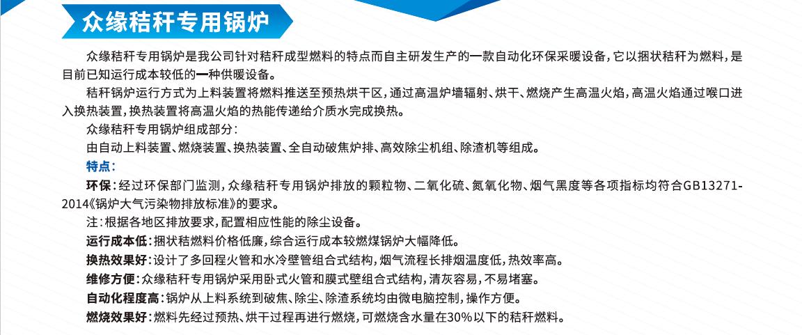 辽宁众缘节能锅炉有限公司是一家国家定点B级锅炉制造企业,集研发、生产、销售及售后服务于一体的大型企业。主要产品有:秸秆气化锅炉、燃油燃气锅炉、电锅炉、半导体锅炉、生物质锅炉、有机热载体锅炉........